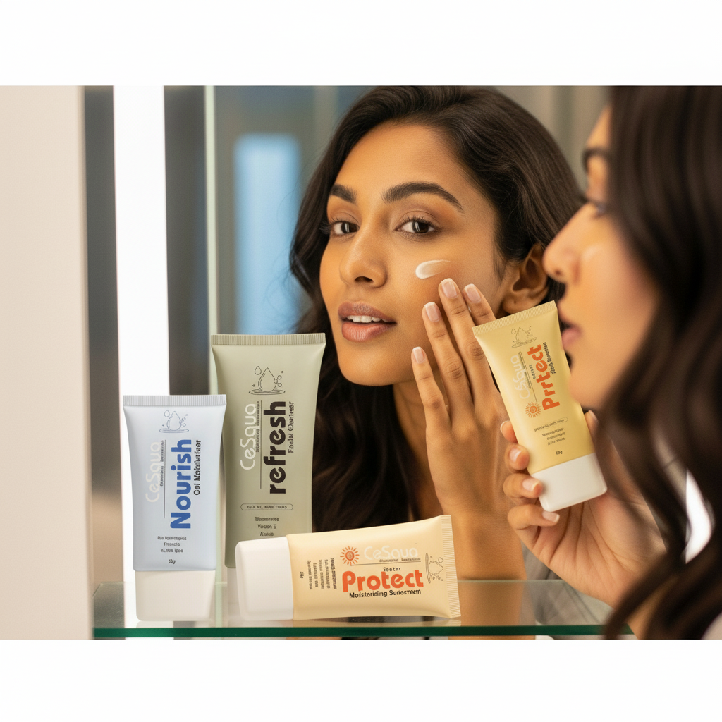 "At CeSqua, we believe great skin doesn’t have to be complicated. As a dermatologist, I saw firsthand how complex routines left people feeling overwhelmed and underwhelmed with results. That's why I created CeSqua—to combine pharma-grade effectiveness with a simple, streamlined routine. Our mission is to do more with less, so you can achieve healthy, radiant skin without the fuss."