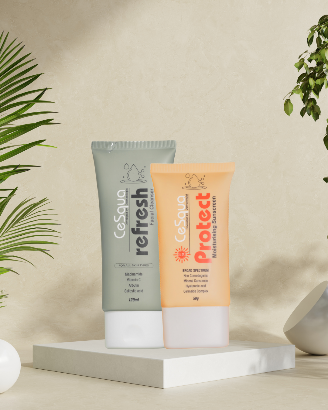 - Step 1: Refresh & Prepare: The facewash purifies your skin from impurities, creating a clean canvas that's ready to receive protection.
